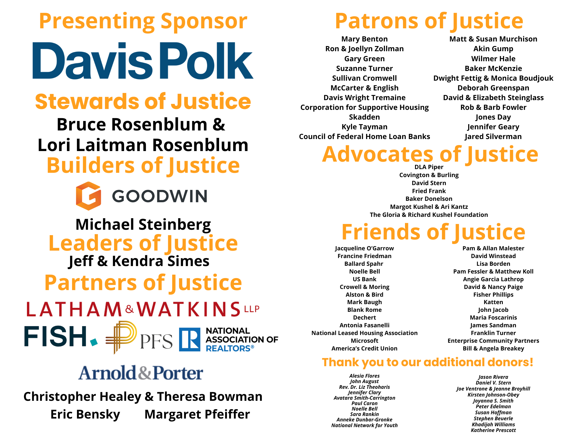 The 2024 Human Right to Housing Awards were held on November 18, 2024 at the Microsoft Innovation & Policy Center in Washington, DC. The awards celebrated the incredible work of the honorees working the raise awareness around and advance solutions to the issues faced by our unhoused community, specifically in the wake of the Supreme Court’s ruling in City of Grants Pass v. Johnson. A recording of the event is available at the link below. Thank you to everyone who helped make this event happen.
